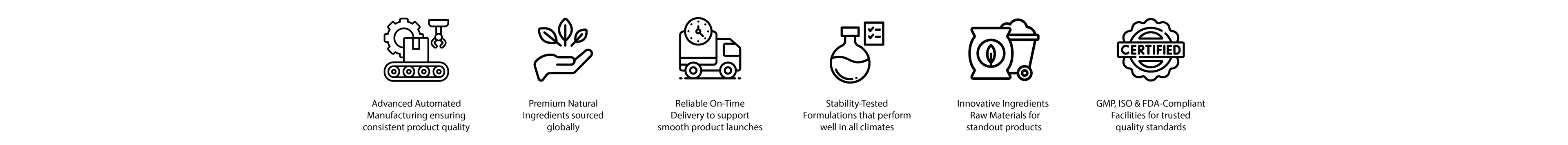 All our facilities are ISO 9001, GMP, FDA, and Sedex SMETA certified. Additionally, we are cruelty-free and vegan compliant, with certifications from Leaping Bunny, PETA, and Ecocert.